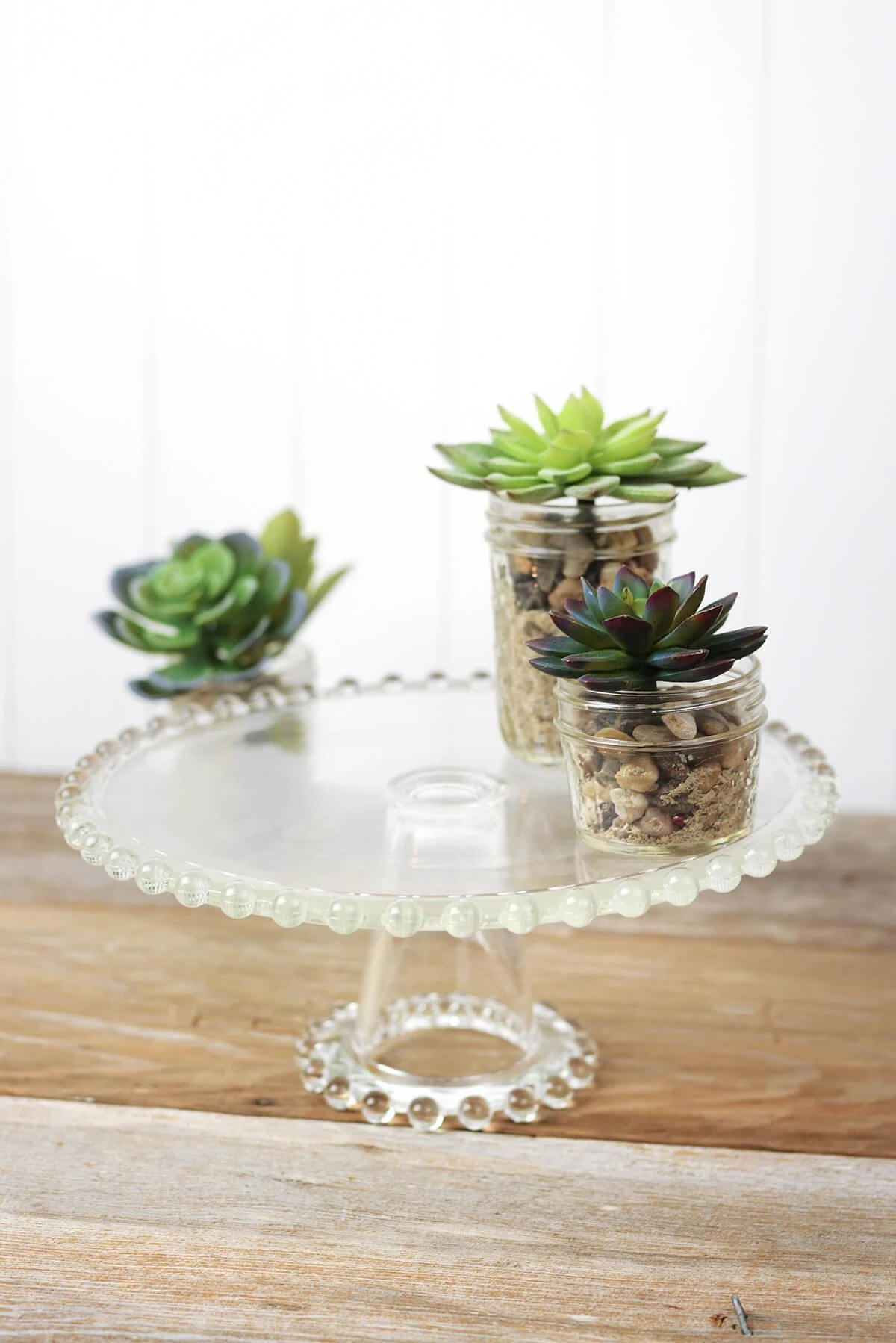 Display your sweet treats with simple elegance by using this Beaded Edge Glass Cake Stand Pedestal 11″. The beaded edge of this piece gives it an intricate scalloped look to complement the design of a wedding cake well. The thick clear glass cake stand has a sturdy pedestal and flat top upper plate. With its lovely design and sturdy composition, this stand can also be used to elevate floral arrangements, candles, or other décor!