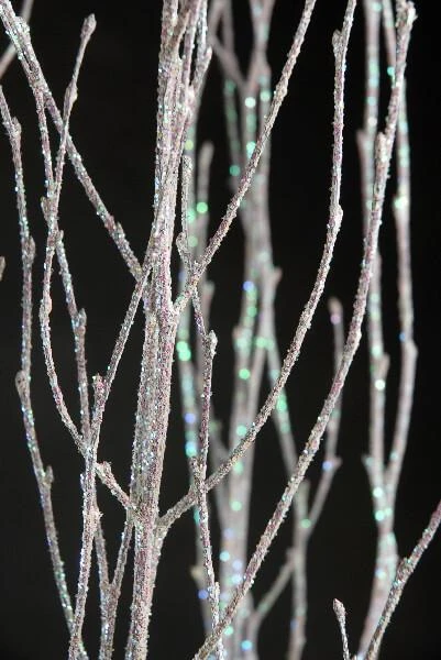 Add some shimmer to your event or home with these Natural Birch Tree Branch Bundle White Sparkle Iridescent. The narrow natural birch branches are covered in iridescent glitter that electrifies any setting. Add these branches to existing arrangements for a bit of twinkle; or place the bundle in a long slender vase on their own for a simple display of glisten. A great choice for weddings, holiday décor, and parties!