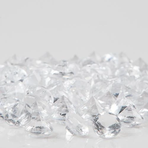 Our Eastland Acrylic Diamonds Clear add sparkle and interest to your home or event design. Acrylic diamond vase filler can be perfectly paired with vases and jars, or used as table scatter confetti to achieve a fabulous look. These gems reflect light and produce a wonderful glow when paired with submersible LED tealight candles. When paired with water these gems create a lovely effect. Great to accent a wedding, party, or event.