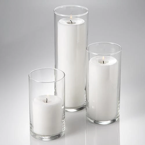 Our elegant, crystal clear Eastland Cylinder Vases make a beautiful presentation in any home or event space. With their simplicity and crystal clear quality glass, these hand-blown vases are a great way to display the twinkling light of pillar candles. With three sizes that add levels and dimension to your table, this set is perfect for any occasion or setting. Set includes 36 total vases – 12 of each size.