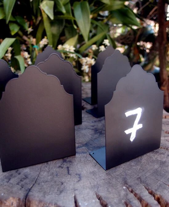 These Elegant Petite Chalkboard Easels are a lovely accent to home and event décor! Use these charming metal chalkboards with lovely top detail as table numbers for a wedding reception or bridal shower. Beautifully label the candy buffet or dessert table at a special event or social. Add your favorite quotes to these small chalkboards to create personalized gifts for friends and family.
