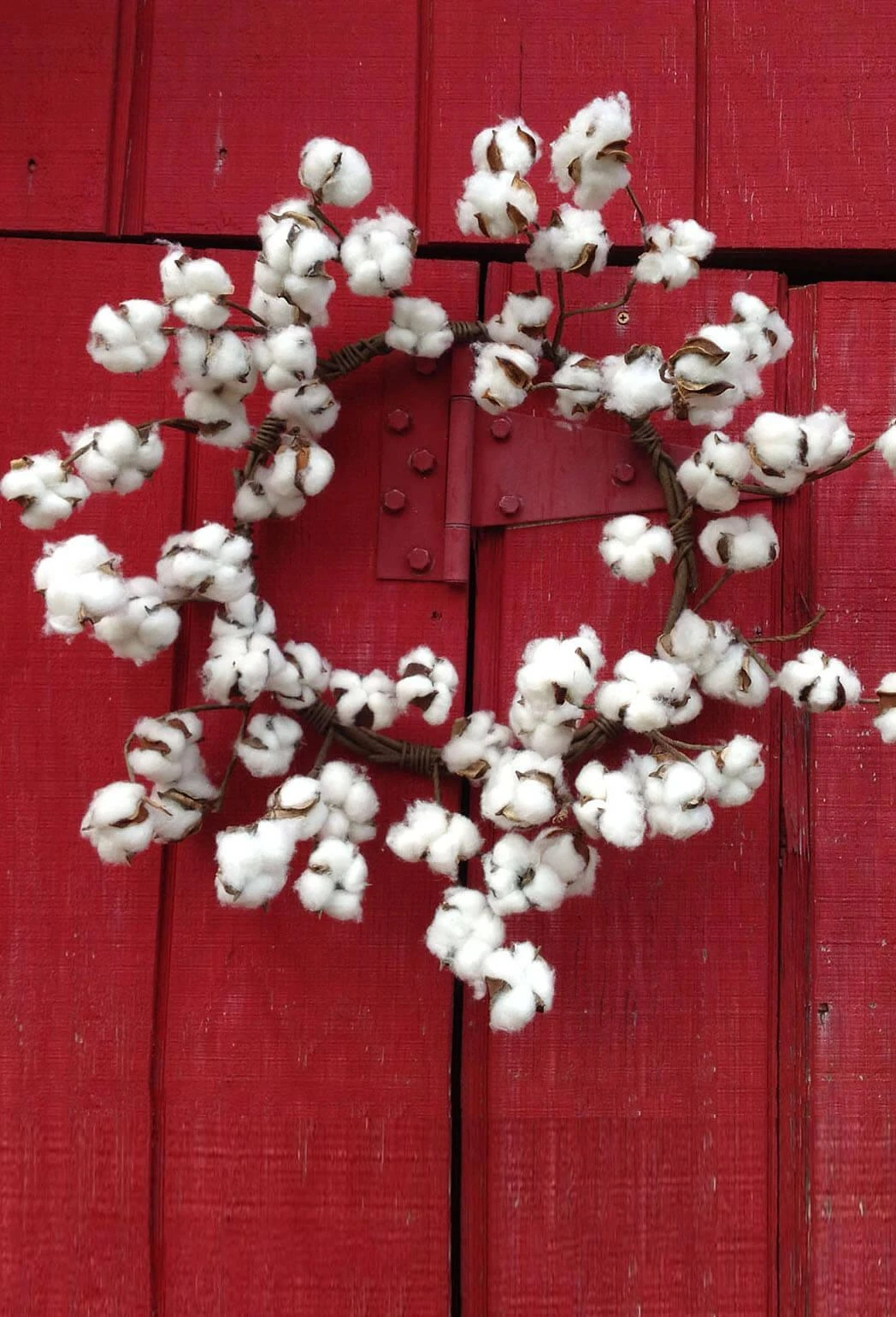 Cotton décor is a hot trend right now; and this wreath is the ultimate accessory! Display a subtle rustic accent with this Faux Cotton Boll Wreath. The stems and leaves are natural and the cotton bolls are artificial. The dark brown bolls full of fluffy white faux cotton adorn each flexible stem of this shabby chic wreath. Perfect for a countryside wedding reception or to complete the autumn display on your front porch.