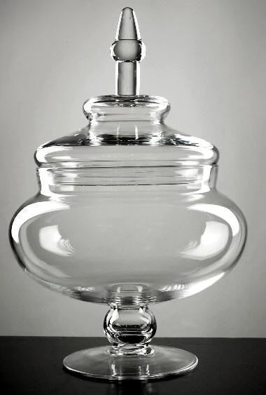 Fill this charming clear Glass Apothecary Jar 14″ with candy or sweet treats at the favor station of your wedding reception or birthday party. Or, use the apothecary jar as an attractive storage container for your bathroom essentials such as cotton balls and small soaps. The small pedestal and unique bell-shaped lid of this piece creates instant elegance in any setting.