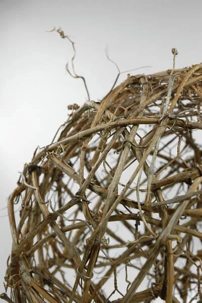 Our Large Grapevine Topiary Ball is a handcrafted natural grapevine sphere proudly made in the USA. Use to make a topiary or a decorative flower ball. Put this giant grapevine ball on a pedestal and fill the inside with fairy lights for a spectacular event display. This rugged orb of twisted and woven twigs and tendrils over chicken wire is an essential accent to rustic displays. Approximately 16 inches in diameter.