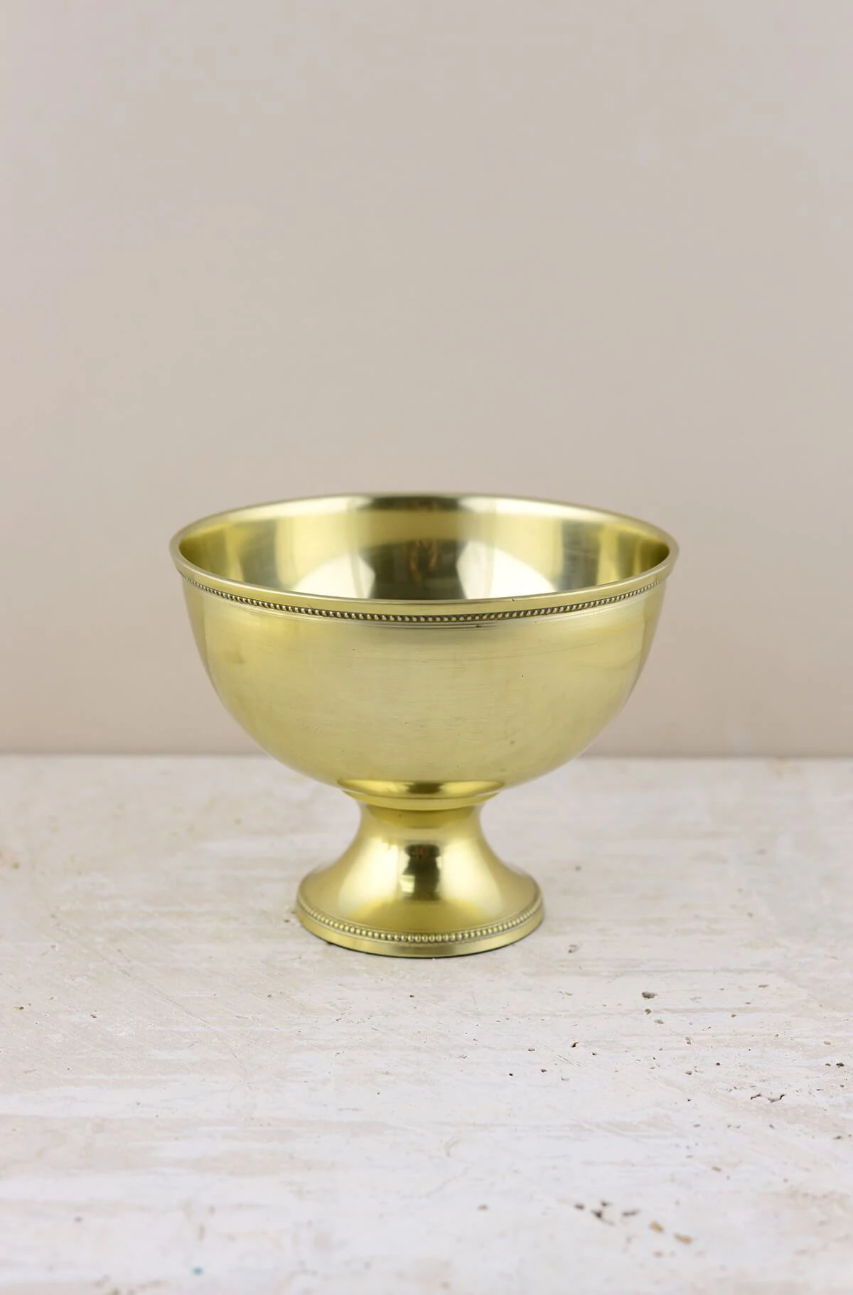 Add regal interest to your tables with the Metal Pedestal Compote Bowl in Gold. The metal bowl with gold finish is perfect for displaying thick bundles of flowers at your wedding reception or special event; and looks especially striking when paired with metallic candle holders and a scattering of tealights. Reminiscent of a mint julep cup, the top of the bowl and the base of the pedestal are adorned with a simple border for added detail.