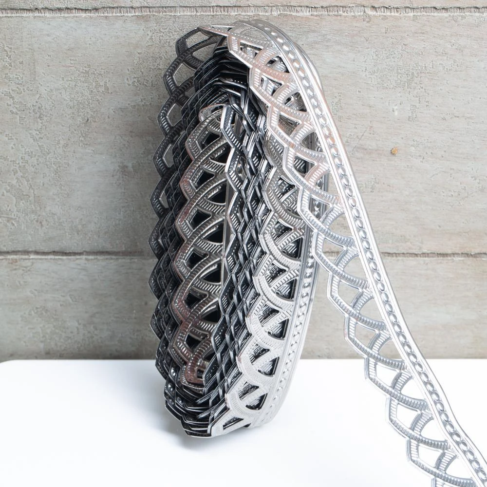 Make unique frames and add trim to vases, wood boxes and more with this Roman Trim Metal Ribbon! This high quality metal ribbon features a wonderful tin and rust patina. Add a rustic, old world touch to all your creations. 1.3in wide x 15ft long.
