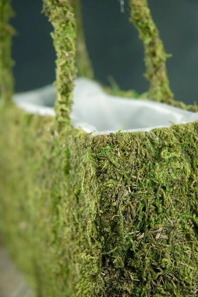 Bring rustic flair to your country-themed wedding with this woodland planter! Fill this Natural Preserved Moss Covered Purse Planter with fresh flowers for a wonderful centerpiece. The Moss Purse is composed of preserved moss over a metal wire frame. For an enchanting arrangement, fill this purse topiary with a thick bouquet of roses and tulips, and display on the card table at your outdoor reception.
