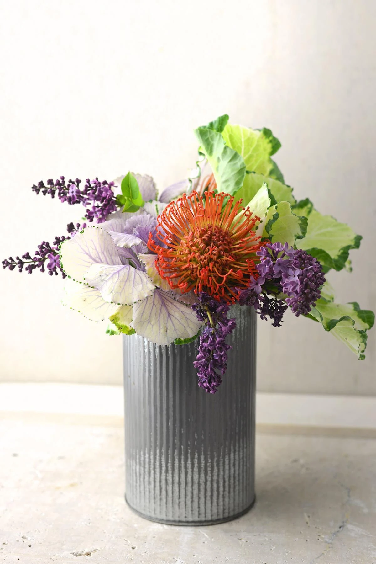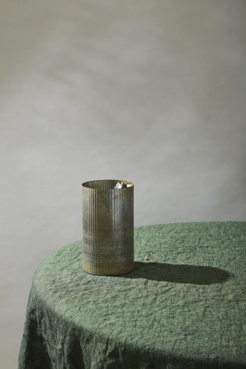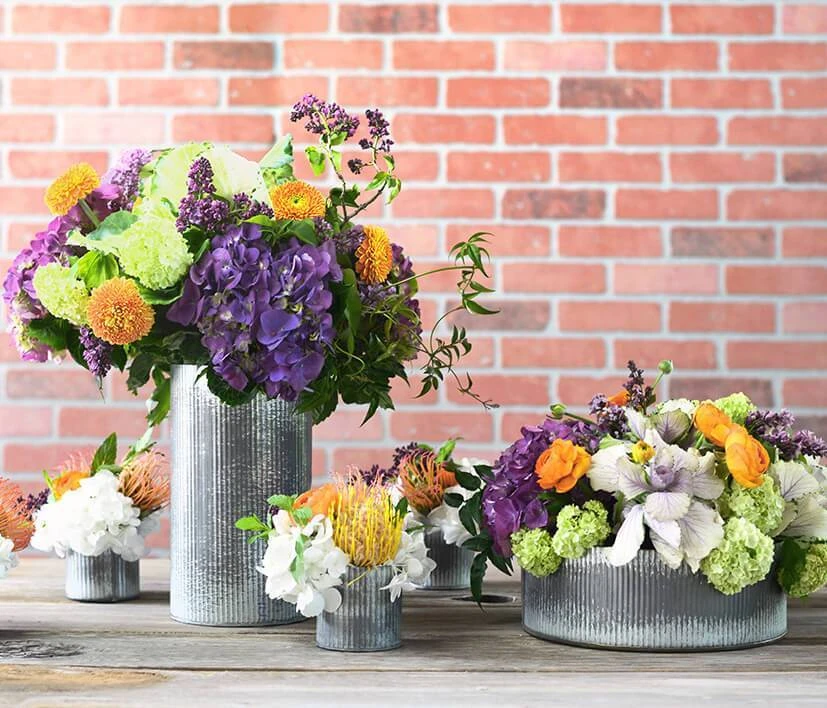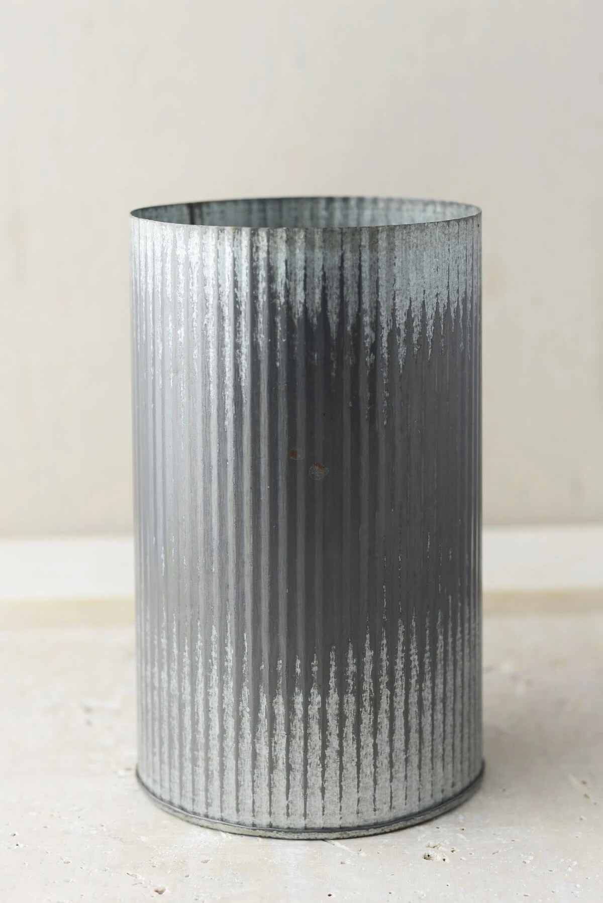 Add some industrial flair to floral beauty with this Norah Corrugated Zinc Vase 7″. This medium-size zinc vase has a rustic finish and is corrugated metal material. This rustic zinc container contrasts yet shows off the softness of floral arrangements and greenery in a lovely and interesting way that will surely impress your guests. Perfect for an outdoor event or modern patio! The unique patina effect on each item creates an one of a kind beauty to every piece.