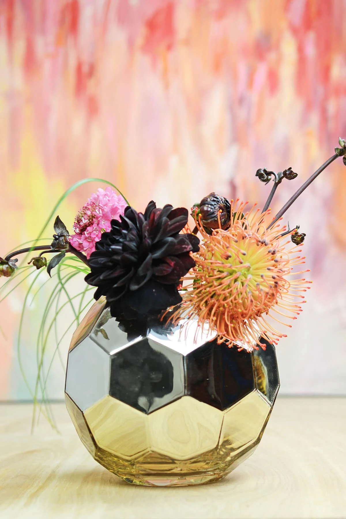 With the geometric styling and subdued color, this vase is perfect with bright white and ivory flowers, deep greenery, richly-hued fall blooms, or the bright and blushing flora of spring!