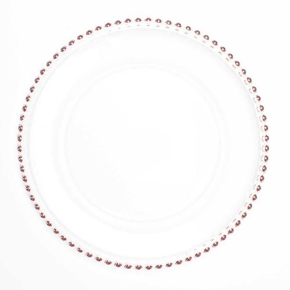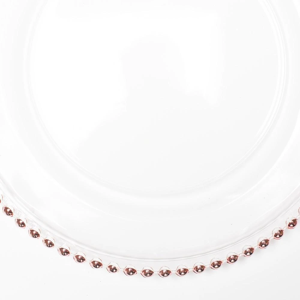 Richland 13″ Rose Gold Beaded Glass Charger Plate Set of 12