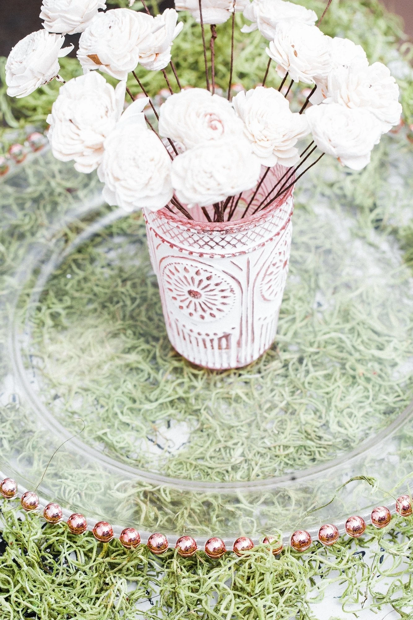 This customer favorite in our charger plate category is spectacular! This clear glass plate with rose gold painted beaded edging is simply stunning; and adds the perfect touch to your table. This charger plate is a great choice for those that might not want to use a traditional charger plate; but still have the sophisticated look. Not only are Charger Plates a beautiful and elegant addition to your table top, they protect your linens. Great in any setting – use for weddings, parties, and special events!