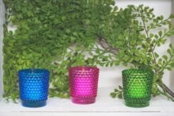 These vivid chunky honeycomb holders are to die for! The brilliant finish of this quality glass holder combined with the textured honeycomb design create the perfect combination to wow your guests. Once a candle is lit inside, the angles of the glass will create a glow that is delightful. Create a stunning table setting for any celebration!