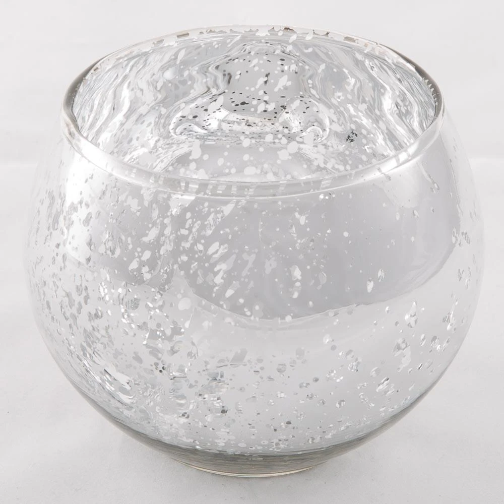 Rocking Hurricane! With a classic round shape paired with a modern silver mercury finish, this high quality glass holder takes your décor to the next level. This reflective, dappled-finish vessel is a beautiful holder for tealight or floating candles; and can even be used to display floral arrangements. Mix and match this holder with the smaller size to create your own stunning looks. Great for both special events and home décor!