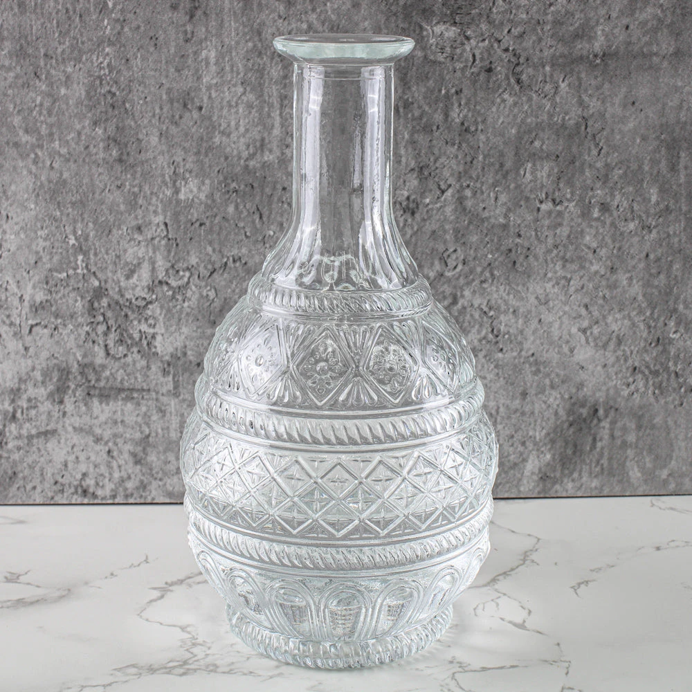 Luxurious LeFaye! This gorgeous vase combines vintage & contemporary to create amazing displays. The beautiful shape, long narrow neck, and layers of textured designs to this high quality clear glass vase makes this piece a customer favorite! Perfect for fresh flowers, or by itself, this vase will add glamour to any setting without adding bulk. An excellent choice for wedding centerpieces, upscale home décor, and gifting your garden’s best blooms.