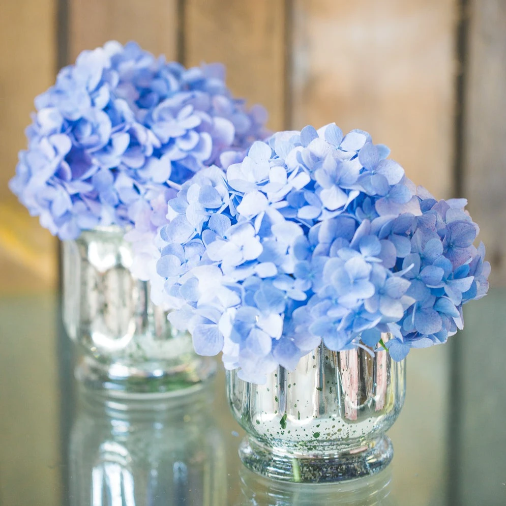 Venus is a striking vase that is both elegant and versatile! From filling with your favorite floral arrangement to adding candle glow inside, you can’t go wrong with this piece. The beautiful, thick detailed vase boasts a reflective mercury finish, gentle curved texture body, and small pedestal base. The flared top is perfect for displaying flower blooms of many colors and sizes. Or, pair the jar with our Richland 3″ Pillar Candle and vase filler; and watch the candlelight dance through the speckled glass.