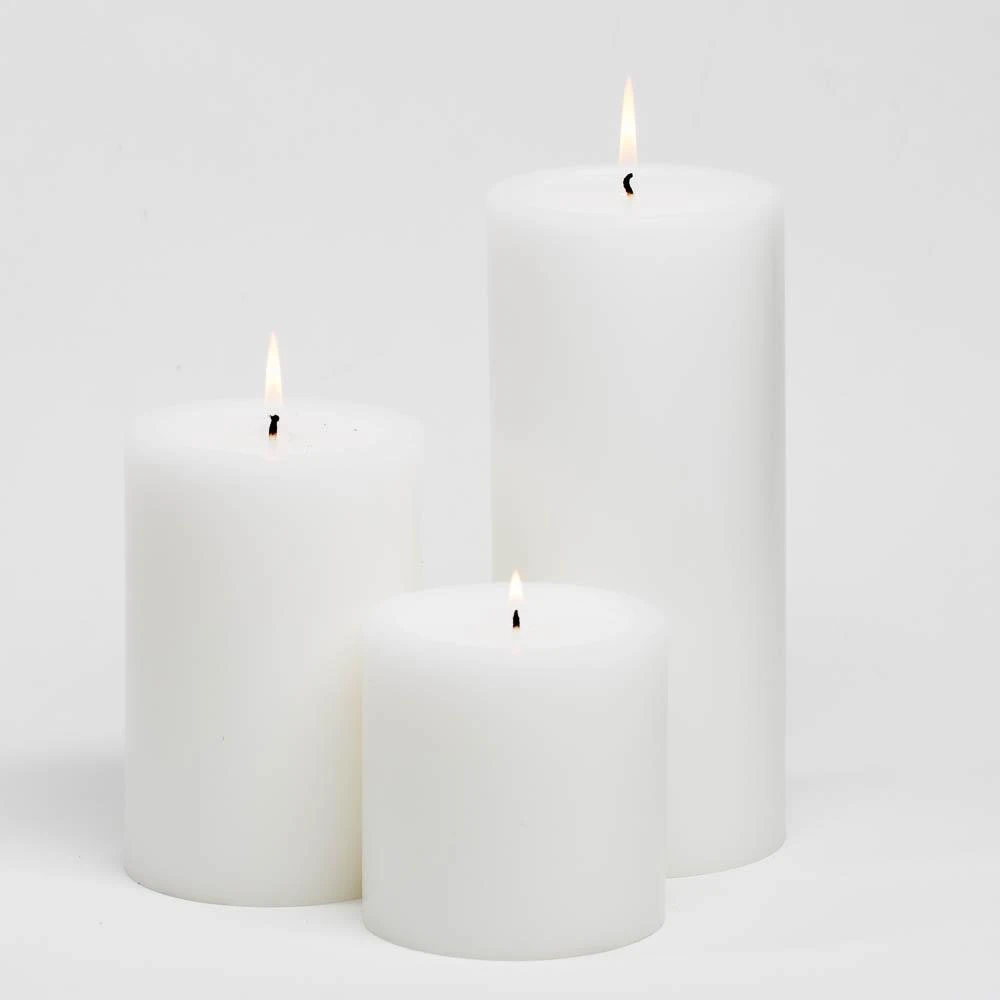 Our Richland brand Pillar Candles are classic, unscented, smooth-sided, hand poured pillar candles made with the highest quality solid wax. The simple beauty and long burning elegance makes them perfect for weddings, restaurants, churches, and in the home! These large versatile pillar candles can stand alone or be used in a grouping for a statement of sophistication. This set includes (6) of each size candle – That’s a total of 18 top quality pillar candles for one low price!