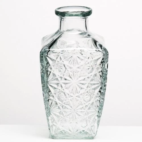 Talk about a perfect space for your flowers! This gorgeous square vase has it all! It boasts thick glass texture with a lovely intricate design and tapers from bottom to top. Your flowers and guests alike will love the beauty and sturdy composition of this clear glass vase. A nice opening to allow for multiple stems. Pair with any of our realistic silk flowers or branches for a hassle-free look. Perfect for home or event décor design!