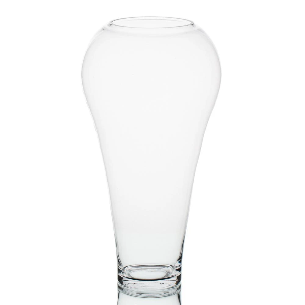 Wonderfully WOW! Wimbly is a stunning tall handblown piece of glass with a unique shape that will make a statement wherever placed. The large opening can accommodate gorgeous full floral arrangements, branches, grasses, ostrich feathers, and more. The globe like shape at the top of the vase and elegant tapering to the bottom makes it is perfect for creating amazing centerpieces. This clear glass vase is can be filled with your favorite fillers and topped with whatever your mind can come up with! An excellent choice for weddings, events, and home décor!